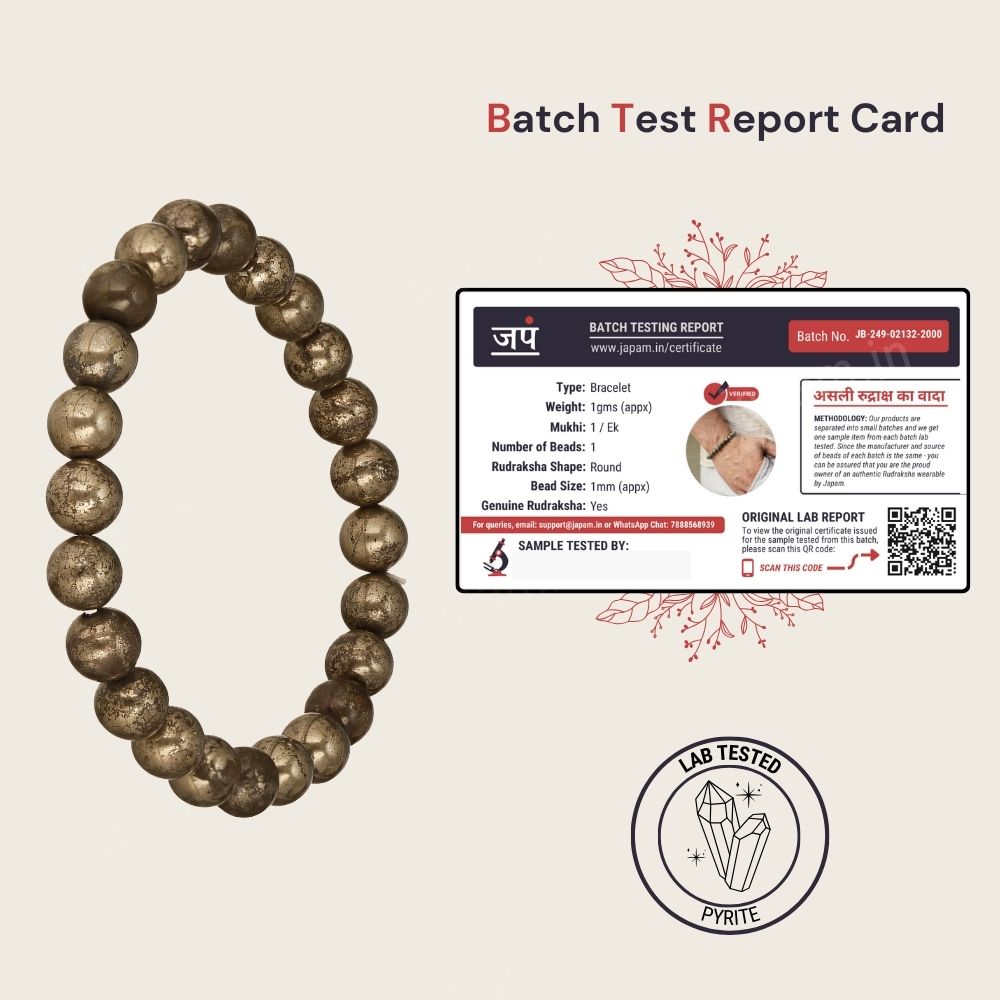 Produced under meticulous Quality Control standards, each band undergoes multiple checks before dispatch. Each Pyrite stone is delicately selected and arranged, ensuring a beautiful and powerful bracelet that enhances its natural charm.