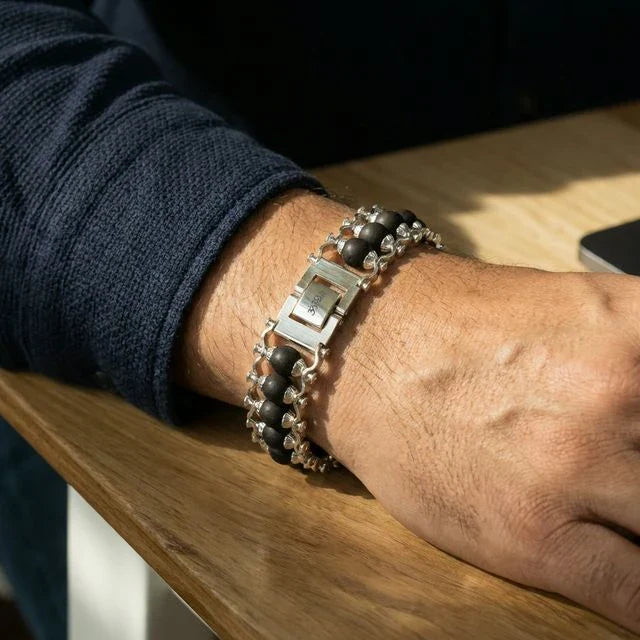 Karungali Modern Bracelet Silver Plated - Natural Ebony Wood