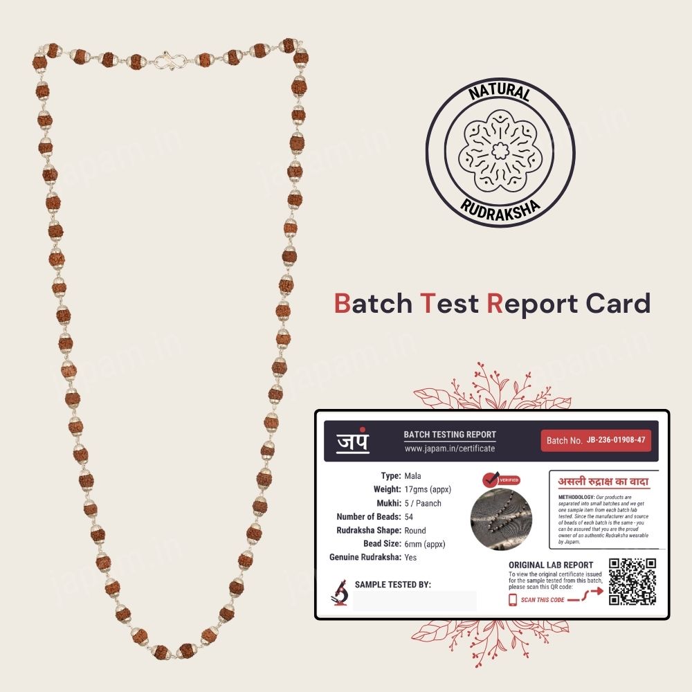 Crafted with precision and care, our Silver Plated Elegant Rudraksha Mala is produced under strict Quality Control standards. Each Rudraksha bead is meticulously selected and hand-polished, while the silver plating ensures a lustrous finish that enhances its spiritual significance.